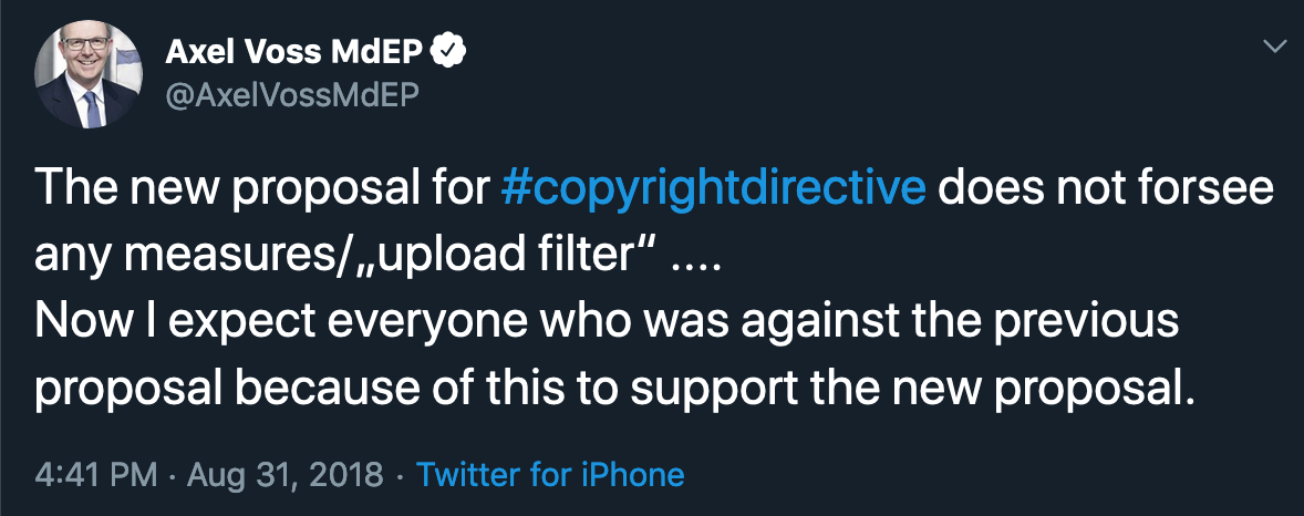 Perhaps proponents of upload filters will argue that they will be authorized by the EU member state’s law that implement the Copyright Directive. Whether this is what the directive requires has been ambiguous from the very beginning.
